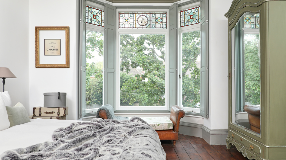 Shutters are an excellent addition wherever you have any kind of period feature in your home. In this bedroom there’s a lot happening in this corner, where the archway features some beautiful coving and by matching the shutters with the coving it gives a more unified look to the space.